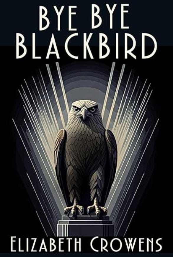 Blackbird is the second installment in her Babs Norman series, following Hollywood Hounds of the Baskervilles. If her debut was a canine-guided romp through the MGM lot, the new book is darker and more feather-strewn, as though the studio backlots have finally turned to face the shadows they’ve been throwing all along. The premise is delightfully self-aware: Humphrey Bogart, amid filming The Maltese Falcon, finds a mummified blackbird and an Egyptian canopic jar on his doorstep. The objects feel like props until they don’t. Fearing blackmail or worse, Bogart turns to Babs Norman and Guy Brent, two frustrated actors who have traded their headshots for private investigators’ badges.